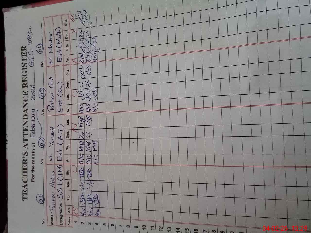 | CNIC | Full Name | Designation | R/C | Absence During Last Calender Month |