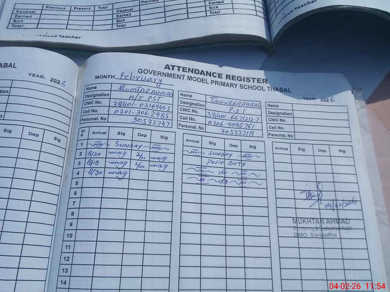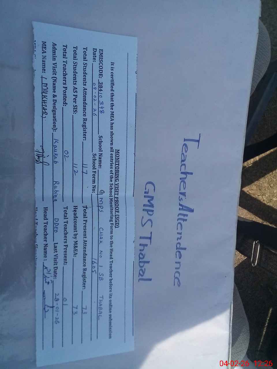 | EMIS Code: 38410348 | Name of School: GMPS CHAK NO.1 SB THABAL | |||