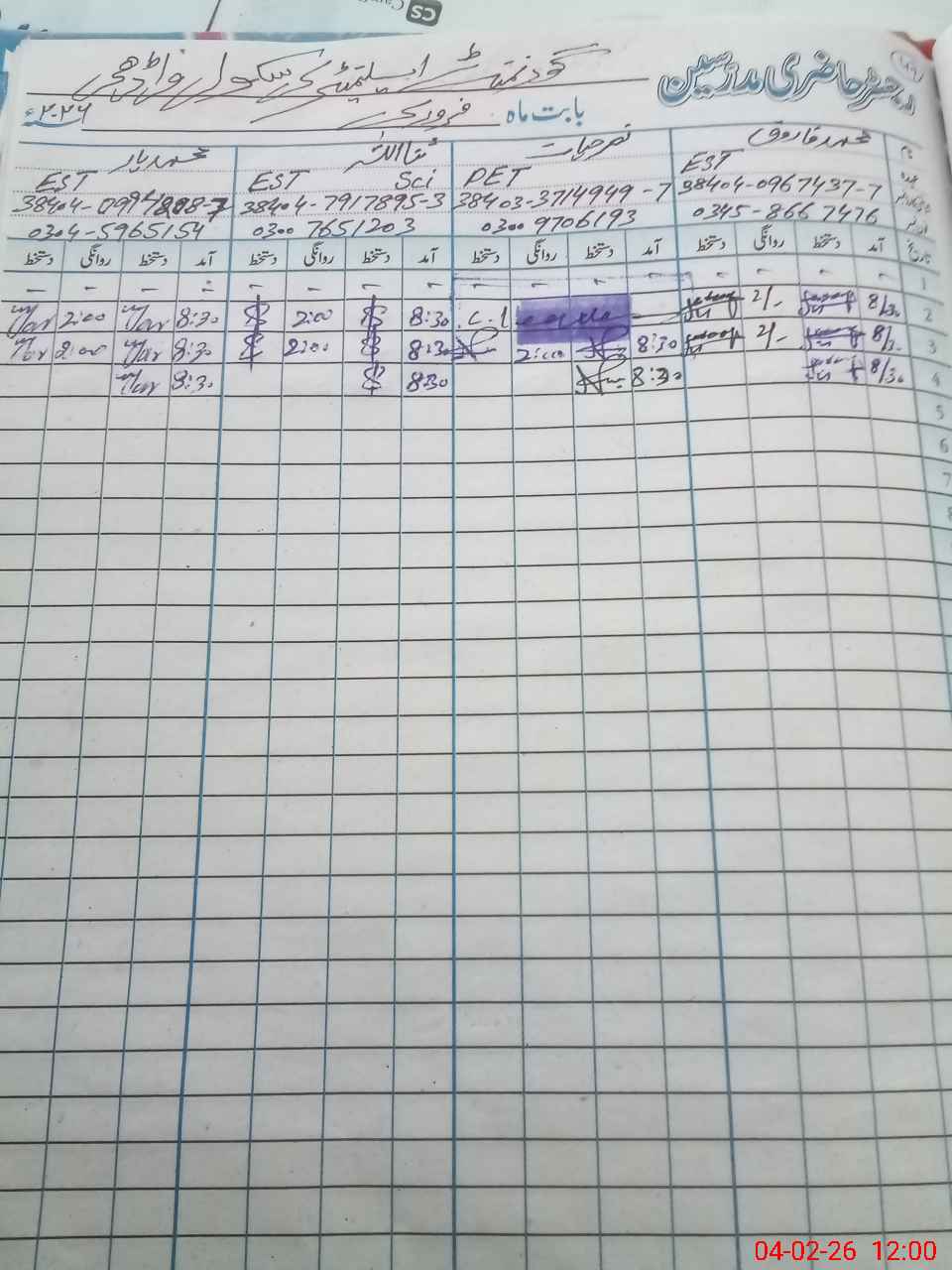 | Name: MU**** FA**** AS**** Designation: (School Headmaster's/Headmistress's) EST I/c Phone/Cell Number: 03**** |