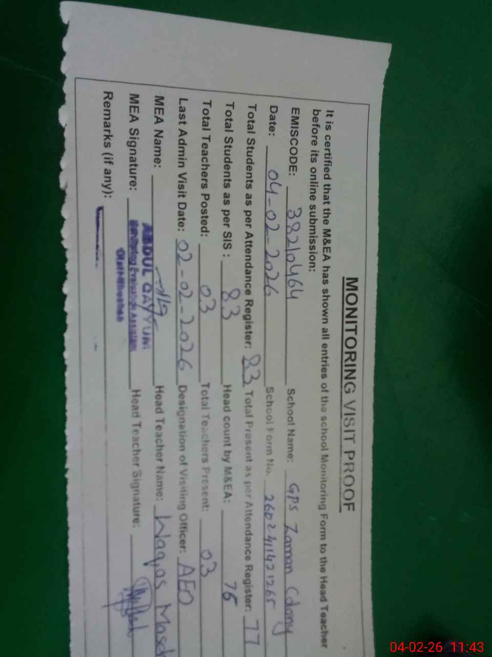 | EMIS Code: 38210464 | Name of School: GPS ZAMAN COLONY | |||