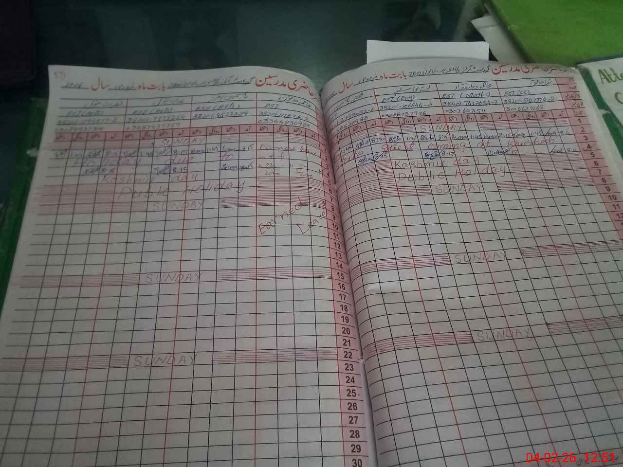 | Leave | Duty | Absent | Maternity | Medical | Ex- Pak |