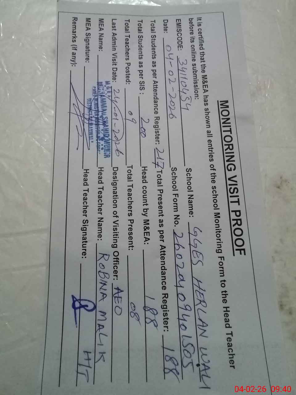 | EMIS Code: 34110454 | Name of School: GGES HERLAN WALI | |||