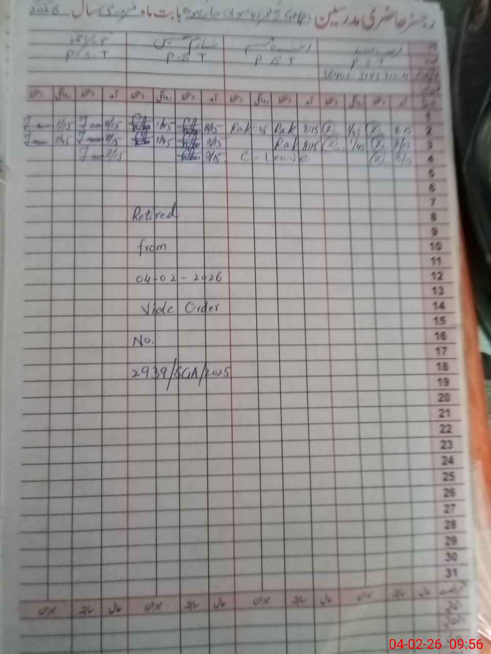| CNIC | Full Name | Designation | R/C | Absence During Last Calender Month |