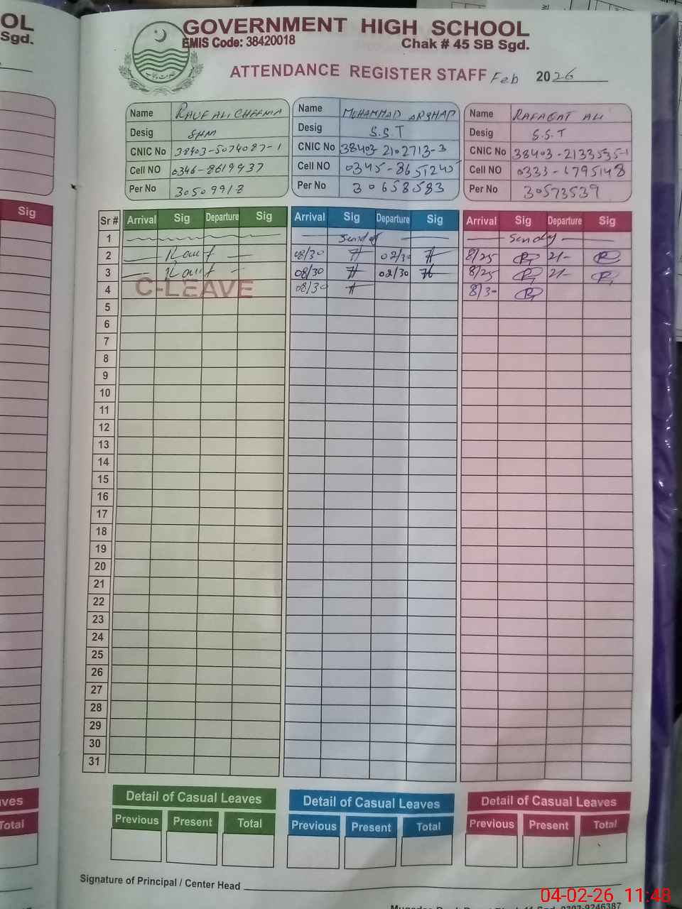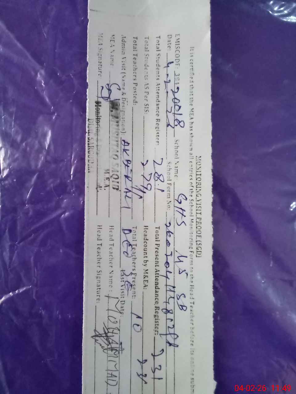 | EMIS Code: 38420018 | Name of School: GHS CHAK NO.45 SB SGD | |||
