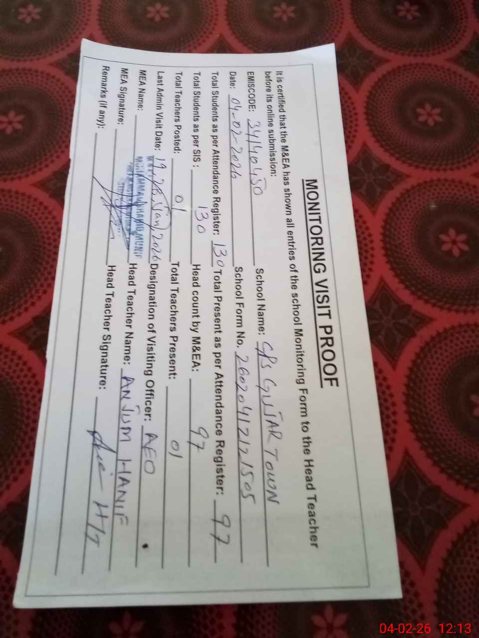 | EMIS Code: 34140450 | Name of School: GPS GUJAR TOWN MURALI WALA | |||