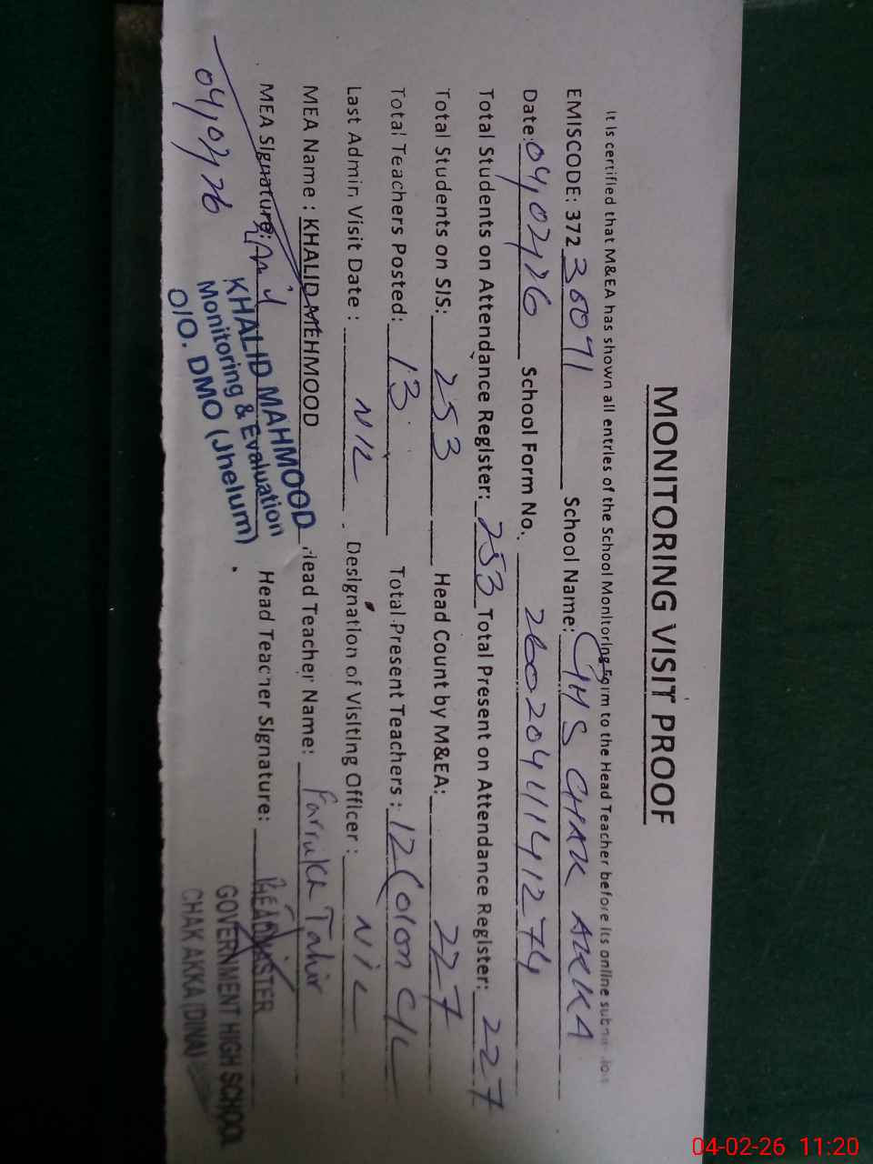 | EMIS Code: 37240071 | Name of School: GHS CHAK AKKA | |||
