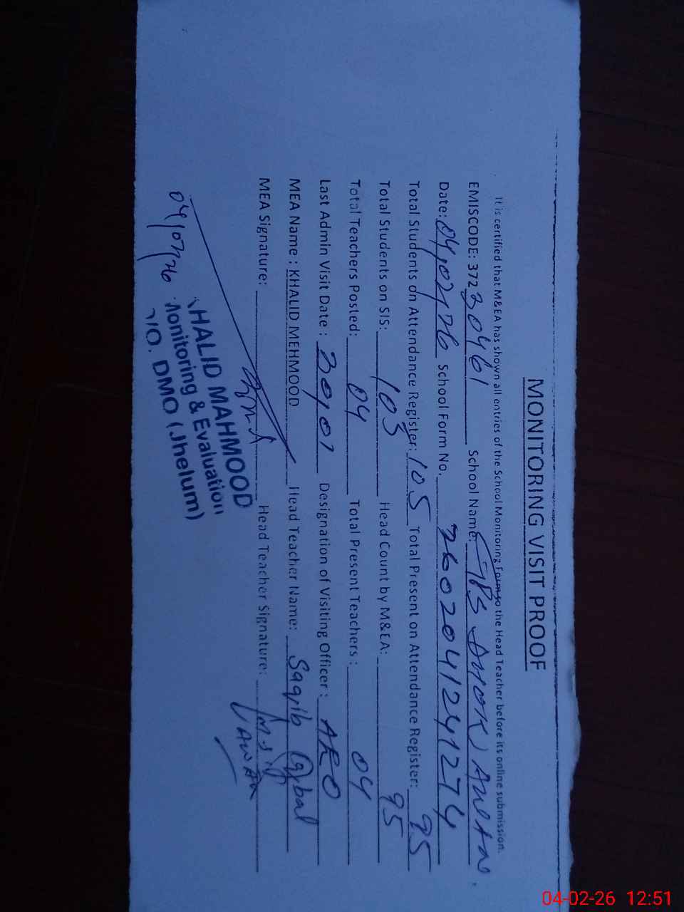 | EMIS Code: 37240461 | Name of School: GPS DHOK AWAN | |||