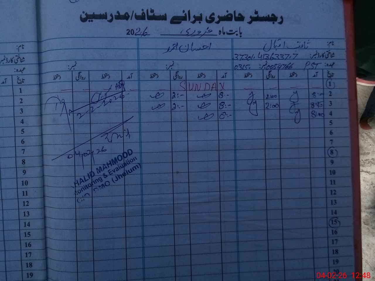 | Name: Ma**** Sa**** Iq**** Designation: (School Headmaster's/Headmistress's) HEADMASTER Phone/Cell Number: 03**** |