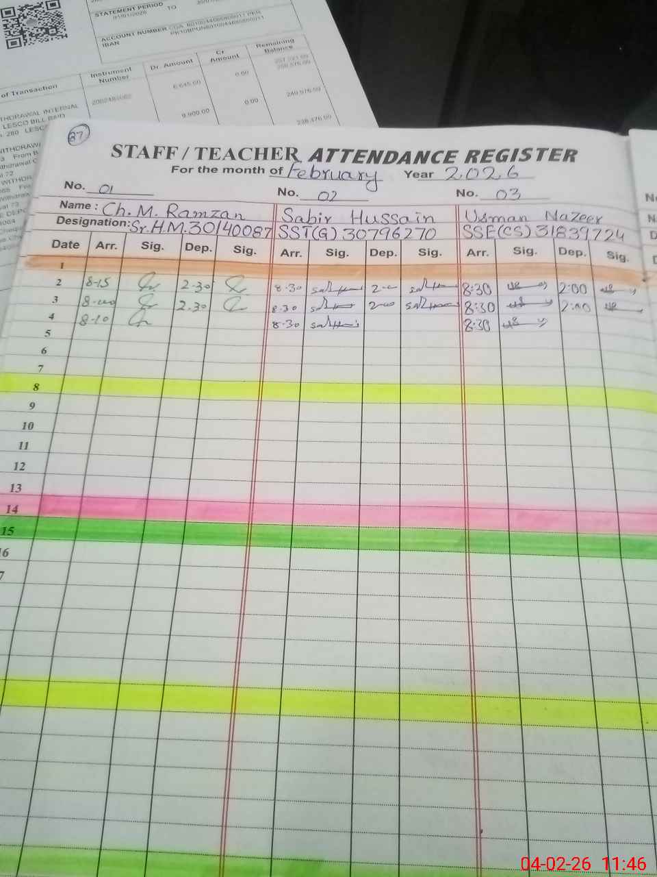 | Name: Mu**** Ra**** Designation: (School Headmaster's/Headmistress's) Senior Head Master Phone/Cell Number: 03**** |