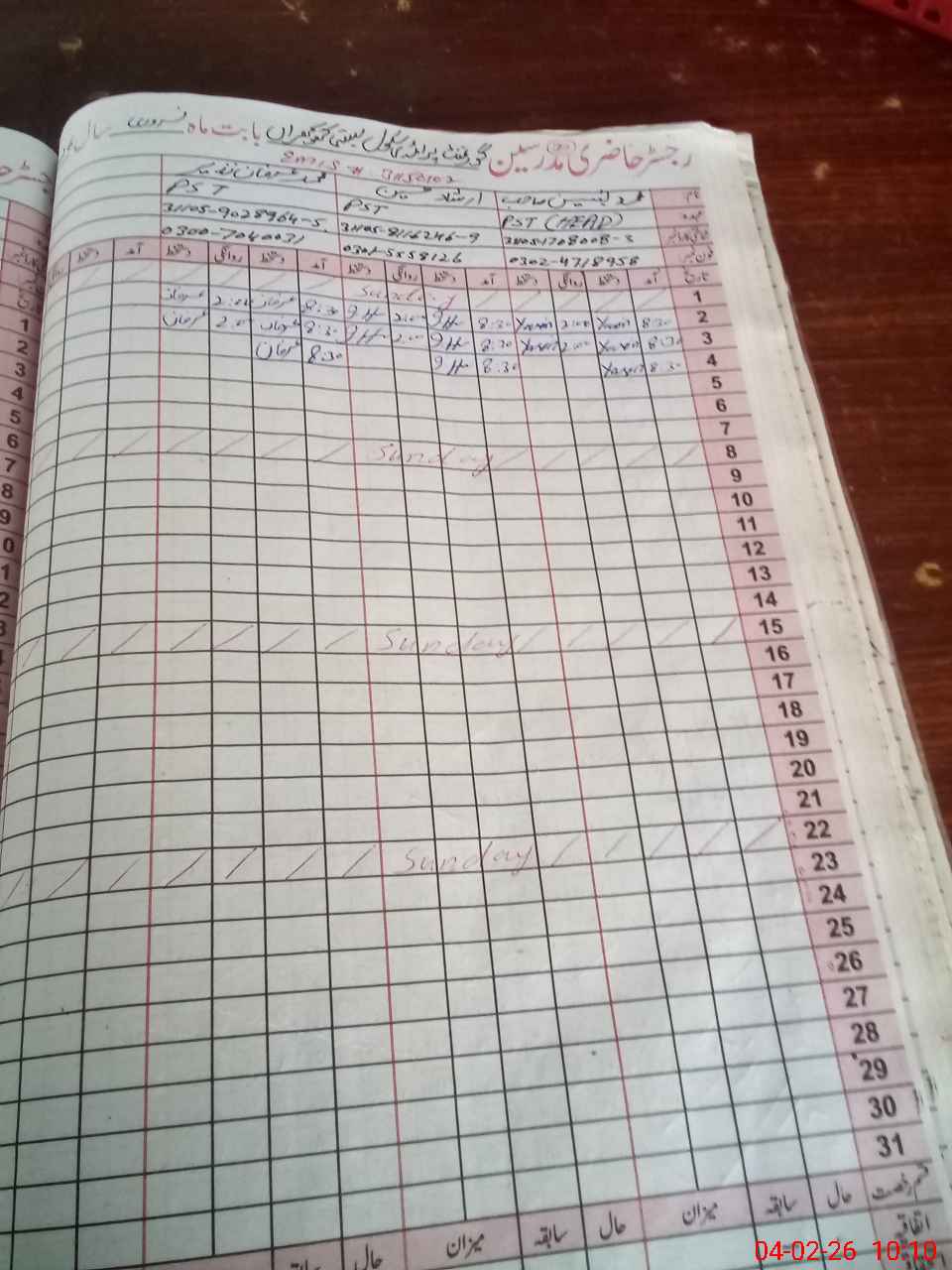 | Name: MYa**** Designation: (School Headmaster's/Headmistress's) PST Phone/Cell Number: 03**** |