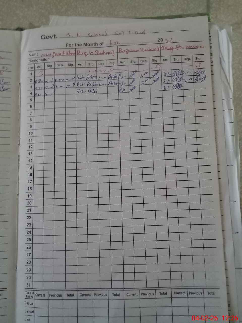 | Leave | Duty | Absent | Maternity | Medical | Ex- Pak |