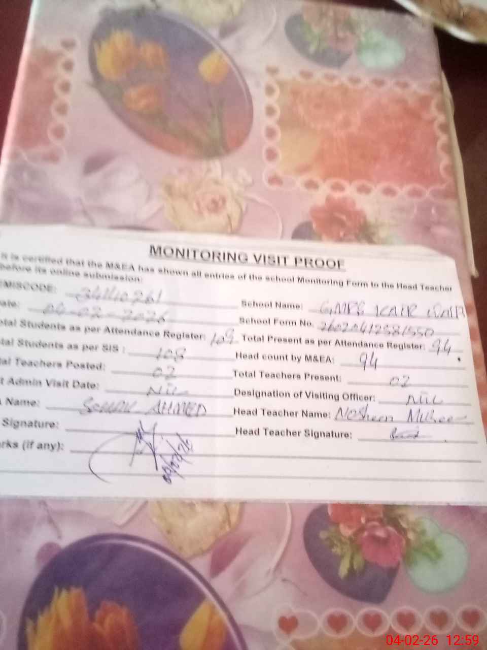 | EMIS Code: 34140261 | Name of School: GMPS KAIR WALA | |||