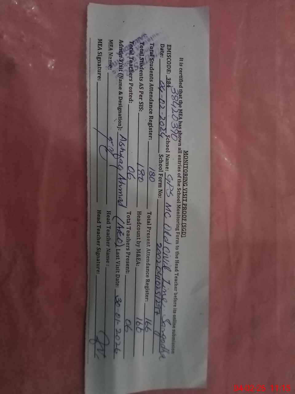 | EMIS Code: 38420390 | Name of School: GPS MC OLD CIVIL LINE SARGODHA | |||