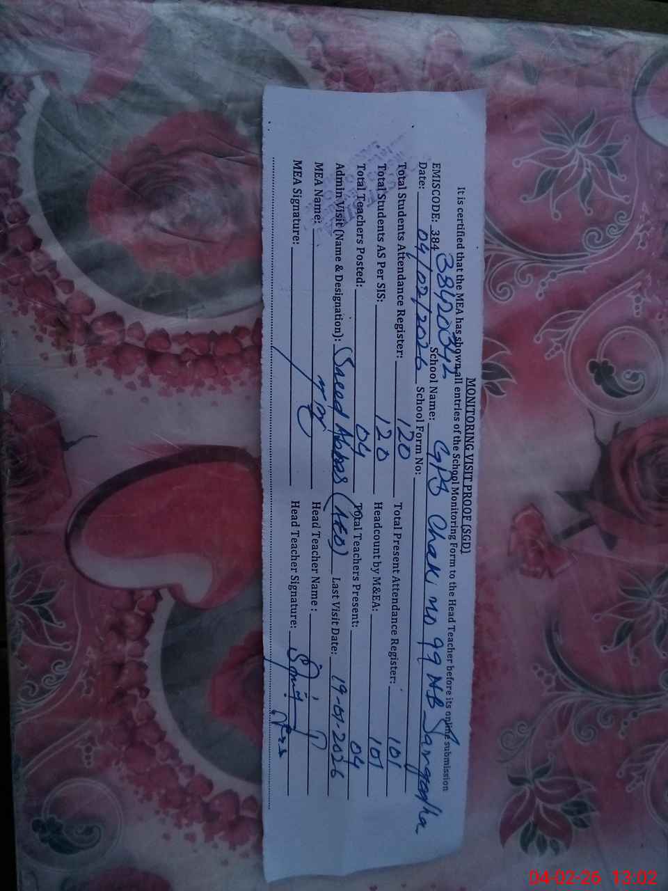 | EMIS Code: 38420342 | Name of School: GPS CHAK NO.99 NB NEW ABADI | |||