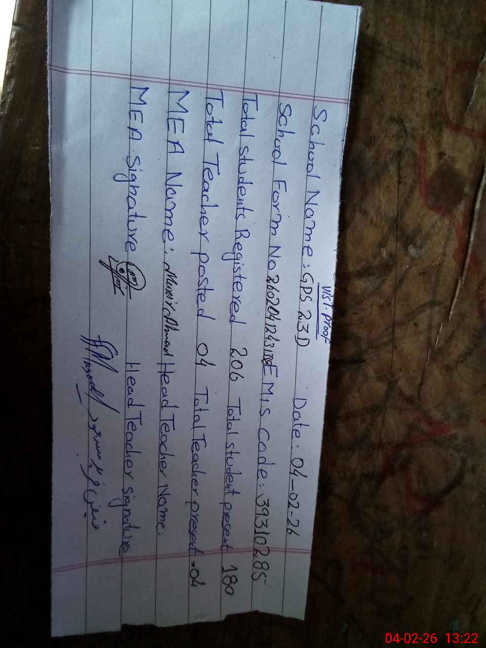 | EMIS Code: 39310285 | Name of School: GPS 23-D | |||