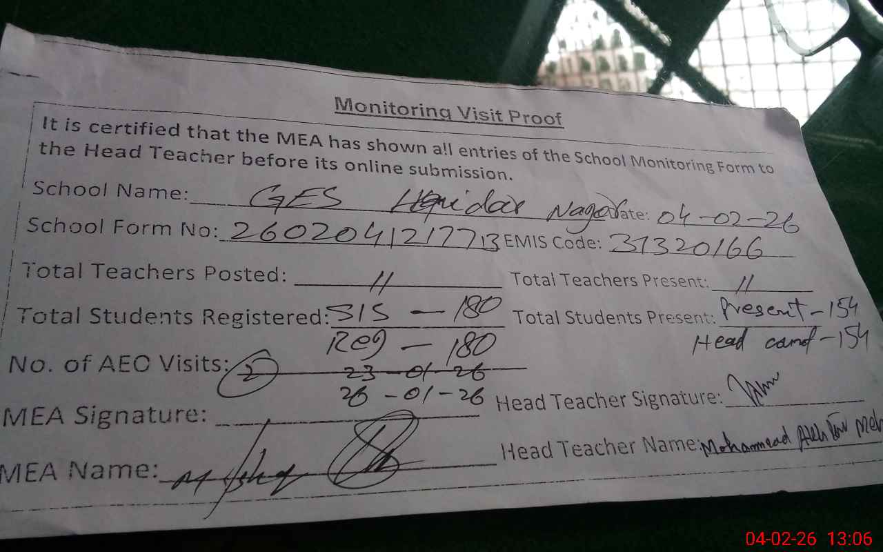 | EMIS Code: 31320166 | Name of School: GES MOADIB HAIDER NAGAR | |||