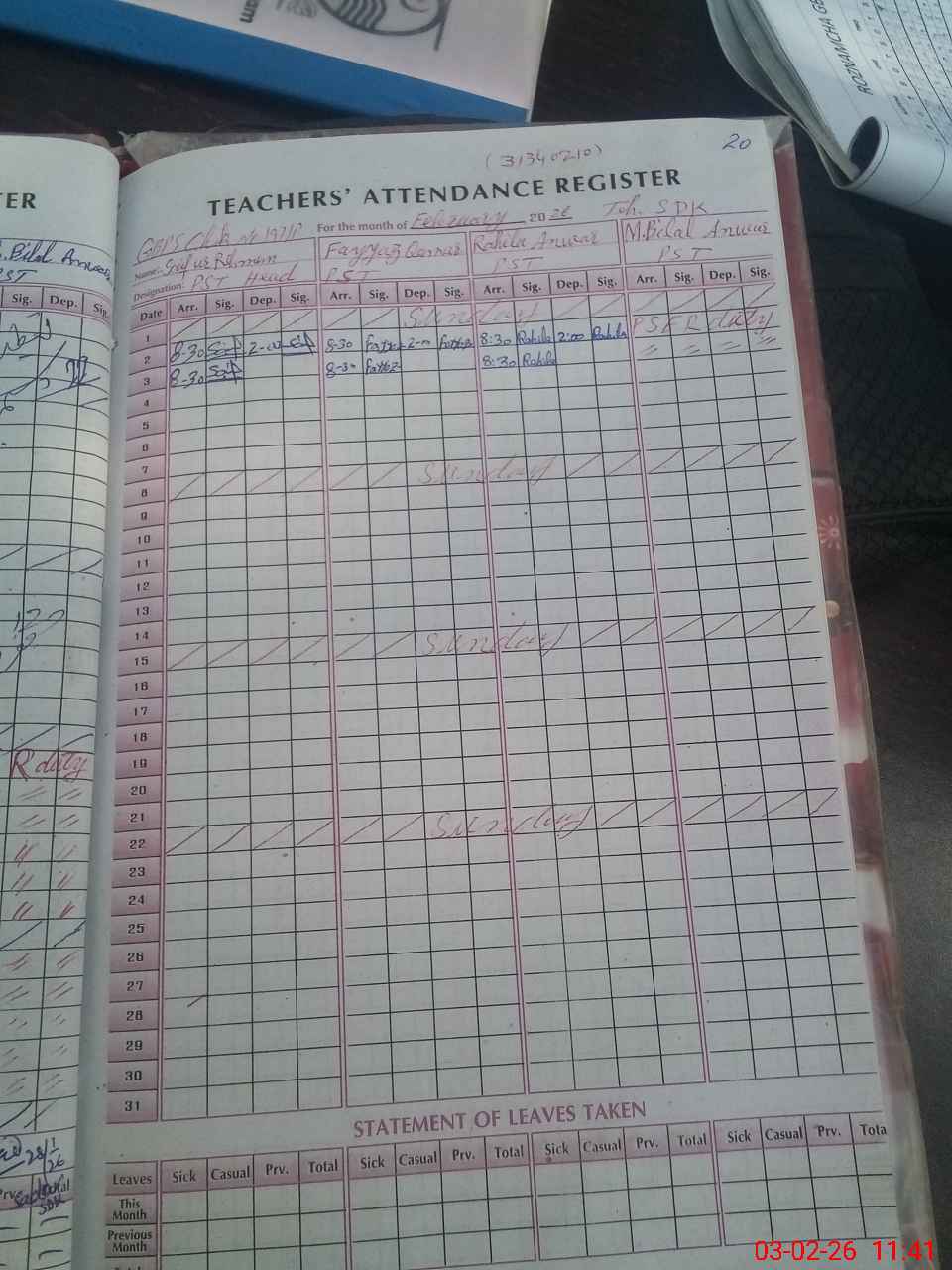 | Name: Sa**** UrRe**** Designation: (School Headmaster's/Headmistress's) PST/PTC/JV Phone/Cell Number: 03**** |