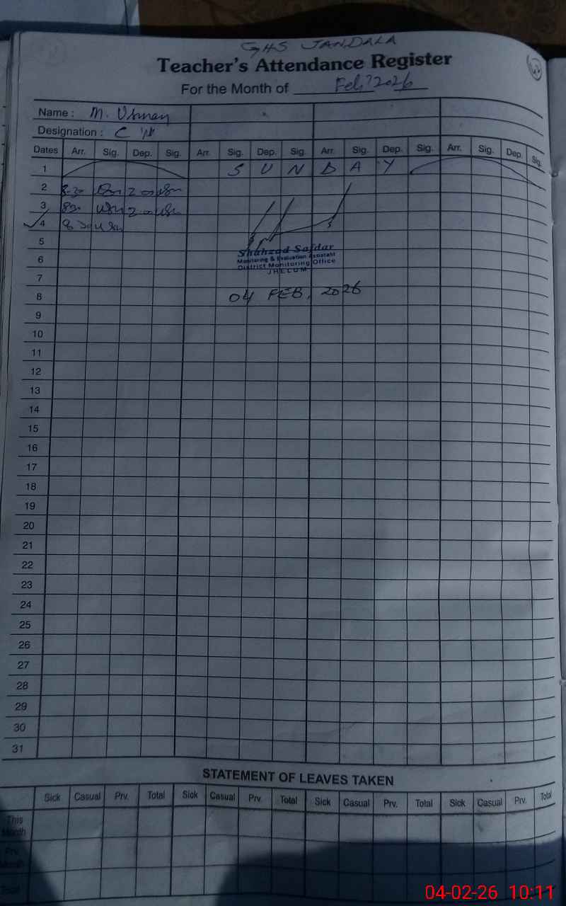 | Attendance Register | Head Teacher | MEA with School | Visit Proof |