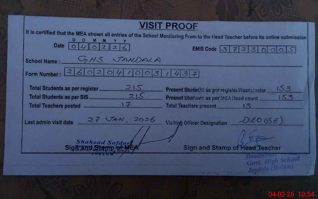 | EMIS Code: 37230005 | Name of School: GHS JANDALA | |||