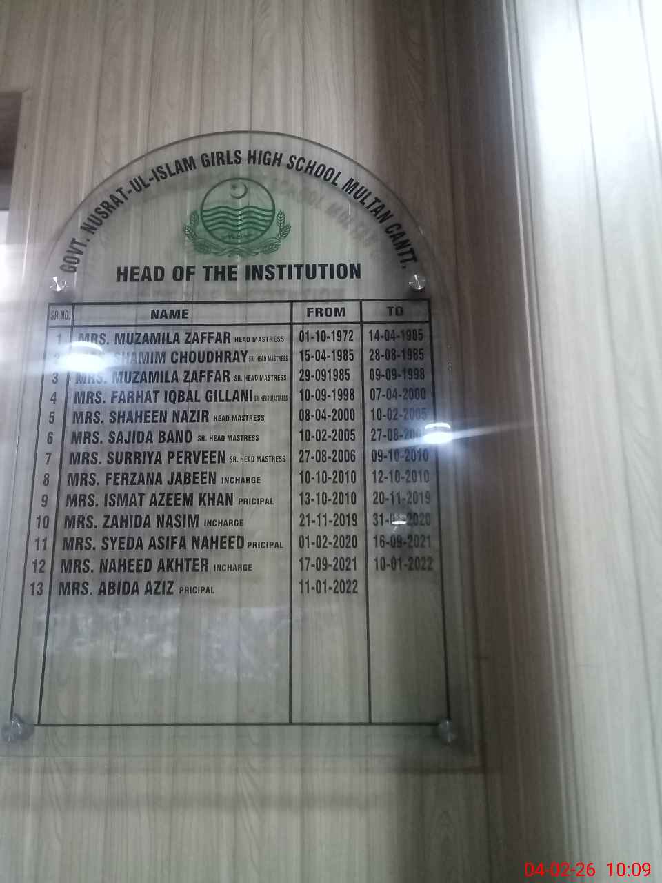 | EMIS Code: 36110041 | Name of School: GGHS NUSRAT-UL-ISLAM MULTAN CANTT | |||
