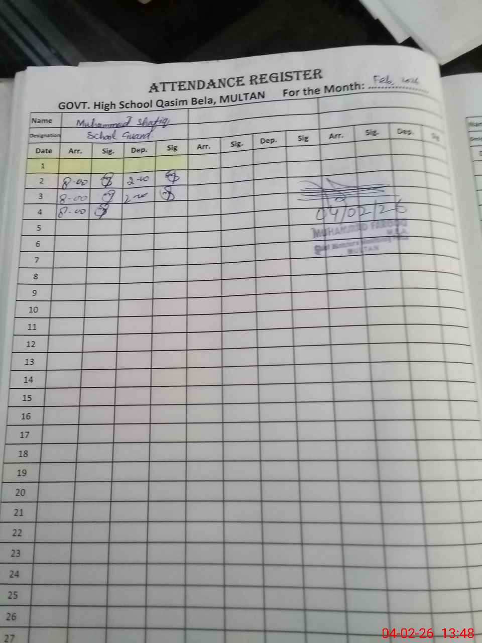 | Monitoring Date: 04-02-2026 | Start Time: 04-02-2026 01:17 PM | End Time: 04-02-2026 01:51 PM | Name of MEA: MU**** FA**** | |
