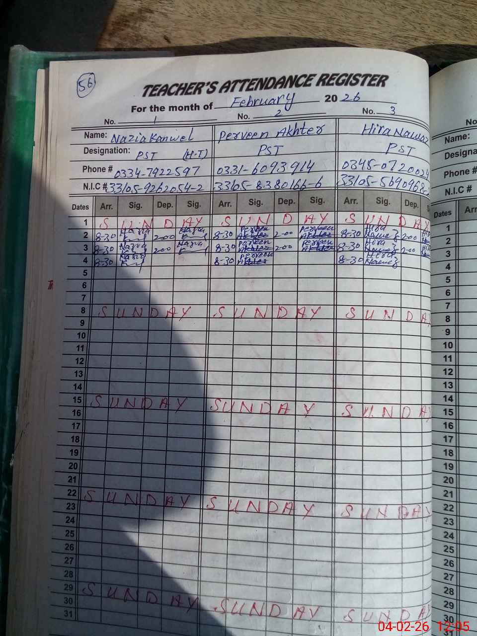 | Name: NA**** KA**** Designation: (School Headmaster's/Headmistress's) PST Phone/Cell Number: 03**** |