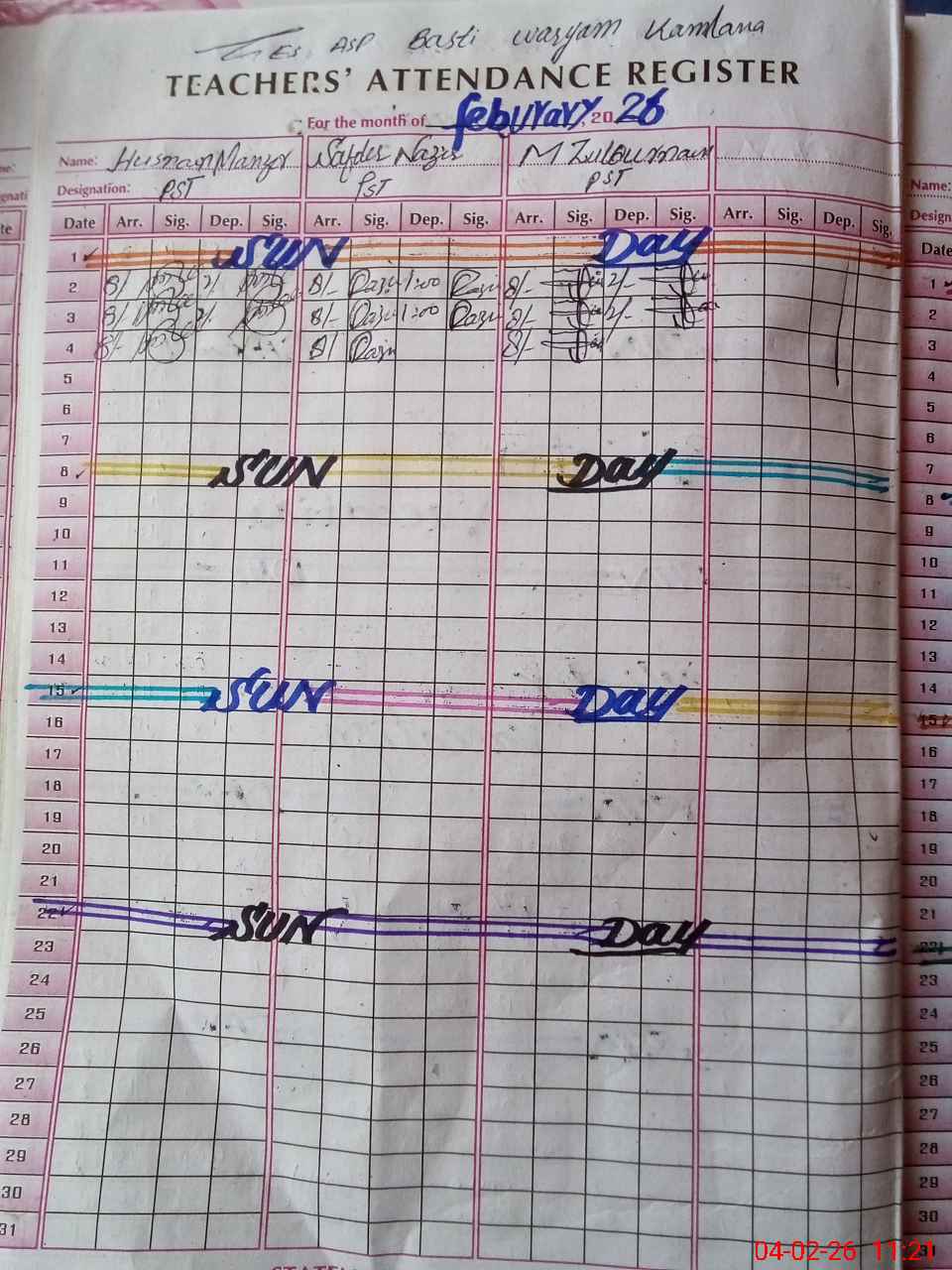 | Name: HU**** MA**** Designation: (School Headmaster's/Headmistress's) PST Phone/Cell Number: 03**** |