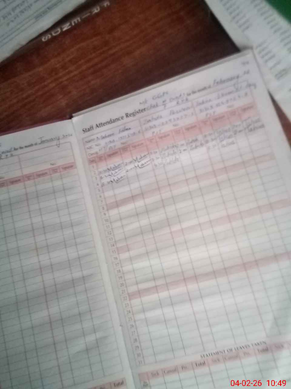 | CNIC | Full Name | Designation | R/C | Absence During Last Calender Month |