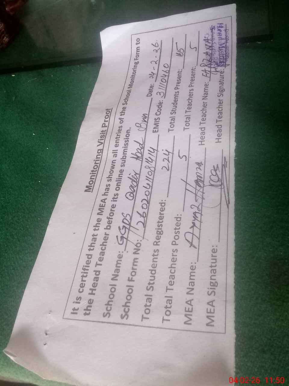| EMIS Code: 31110460 | Name of School: GGPS QADIR ABAD | |||