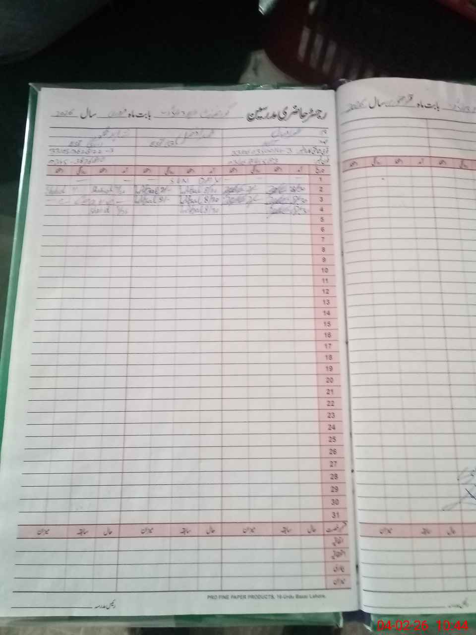 | CNIC | Full Name | Designation | R/C | Absence During Last Calender Month |