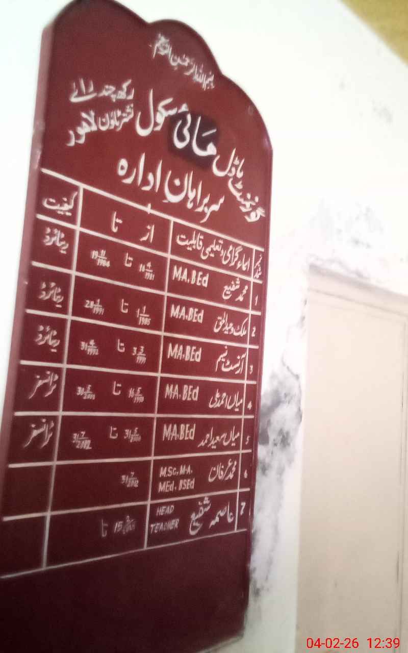 | Name: As**** Sh**** Designation: (School Headmaster's/Headmistress's) Incharge Headmistress Phone/Cell Number: 03**** |