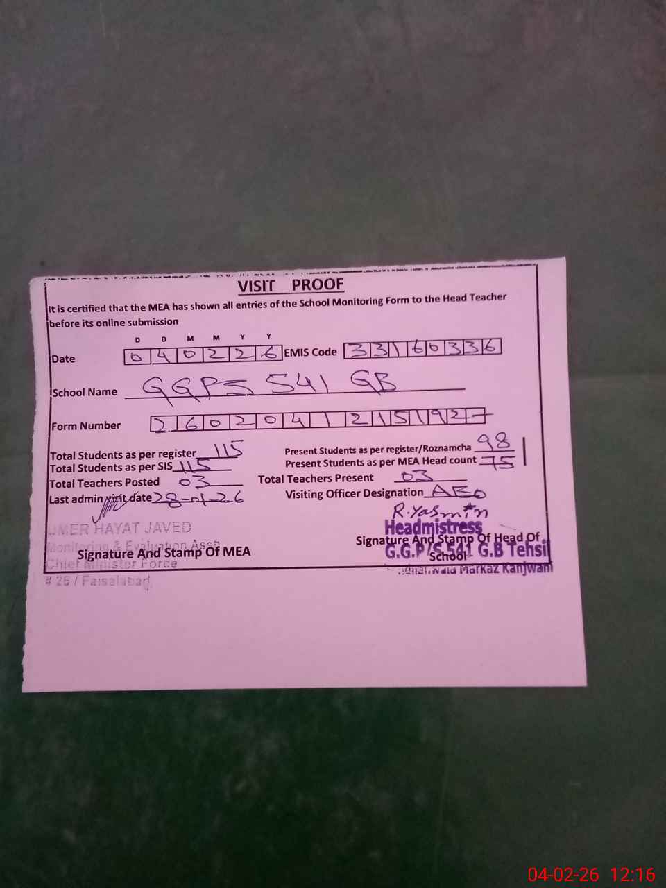 | EMIS Code: 33160336 | Name of School: GGPS 541/GB | |||