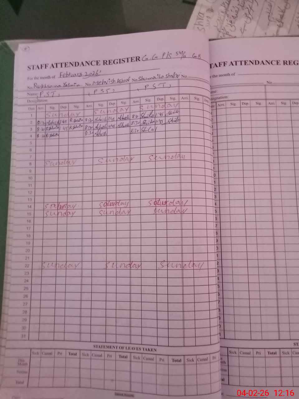 | Name: RU**** YA**** Designation: (School Headmaster's/Headmistress's) PST Phone/Cell Number: 03**** |