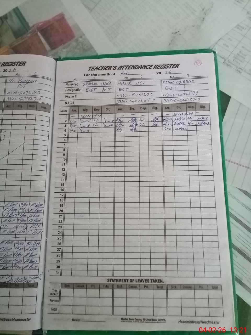 | Name: MU**** IK**** ULHA**** Designation: (School Headmaster's/Headmistress's) EST (GENERAL ) Phone/Cell Number: 03**** |