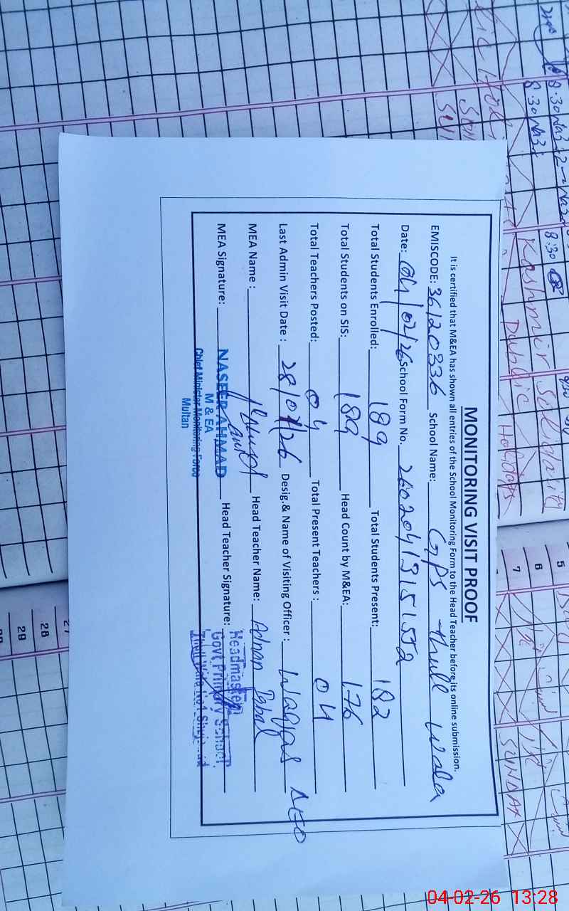 | EMIS Code: 36120336 | Name of School: GPS THULL WALA NO.1 SHUJABAD | |||
