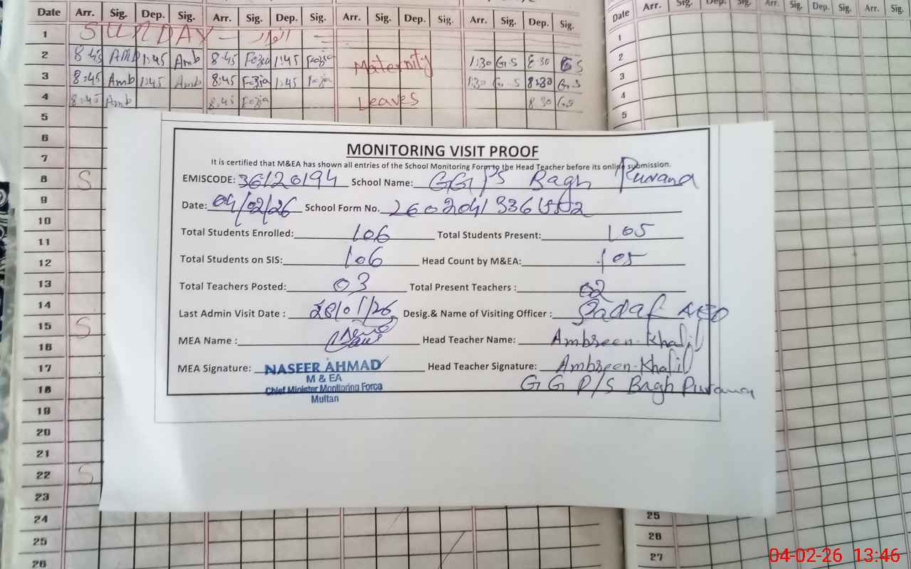 | EMIS Code: 36120194 | Name of School: GGPS BAGH PURANA SHUJABAD DISTT. MULTAN | |||