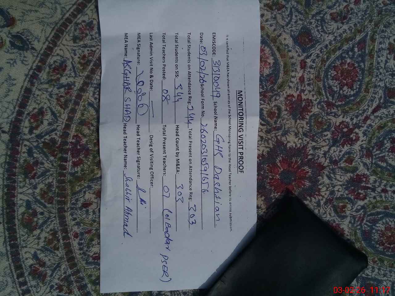 | EMIS Code: 31310049 | Name of School: GHS DESHTIAN | |||