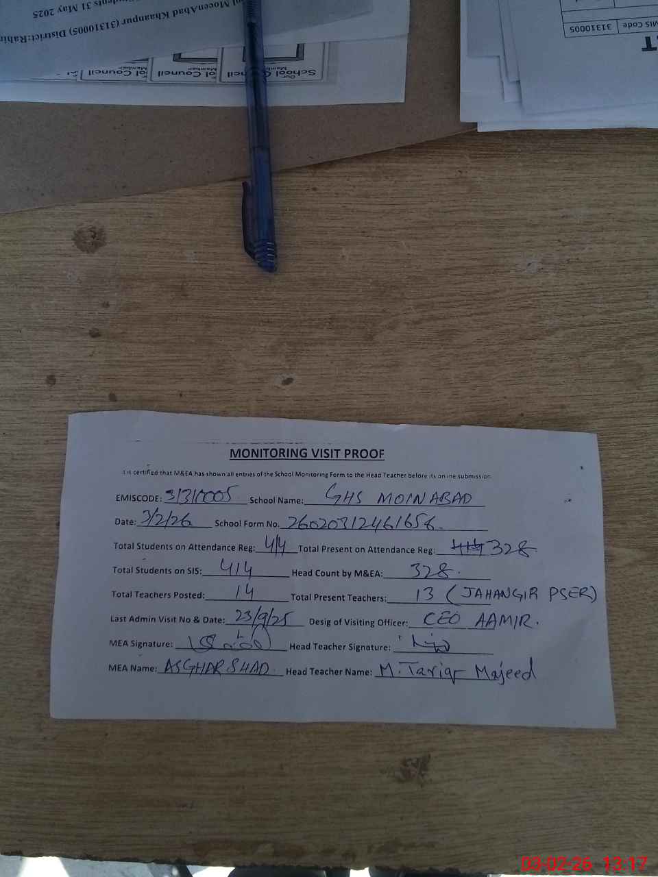 | EMIS Code: 31310005 | Name of School: GHS MOEEN ABAD | |||