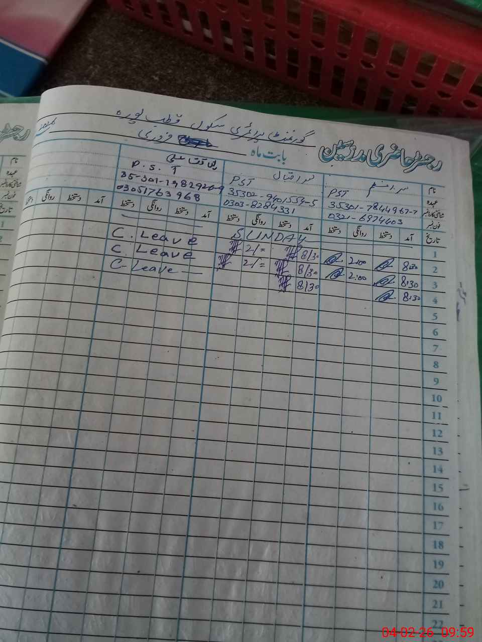 | Name: MU**** Az**** Designation: (School Headmaster's/Headmistress's) PTC/JV Phone/Cell Number: 03**** |