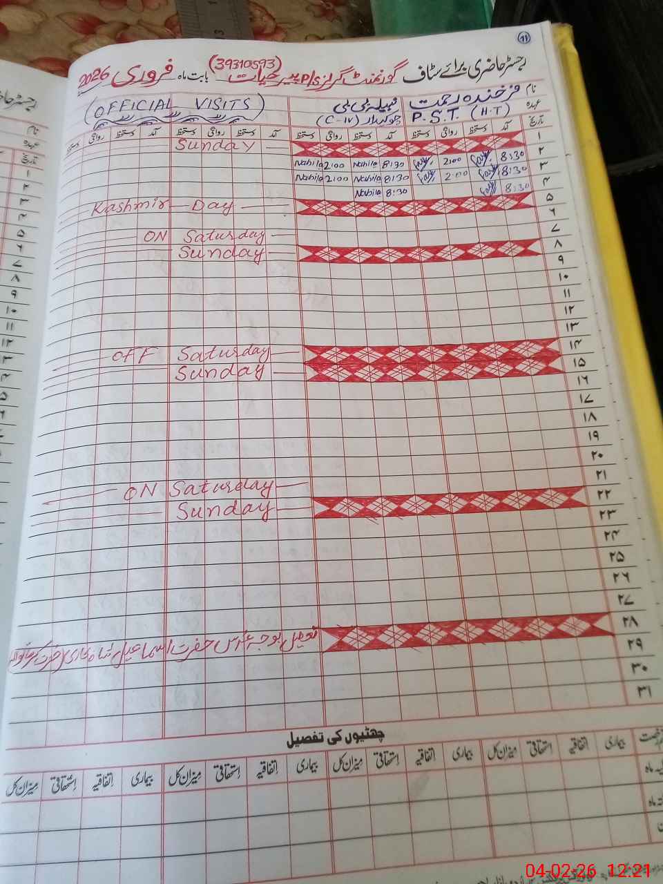 | Name: Fa**** Re**** Designation: (School Headmaster's/Headmistress's) PST Phone/Cell Number: 03**** |