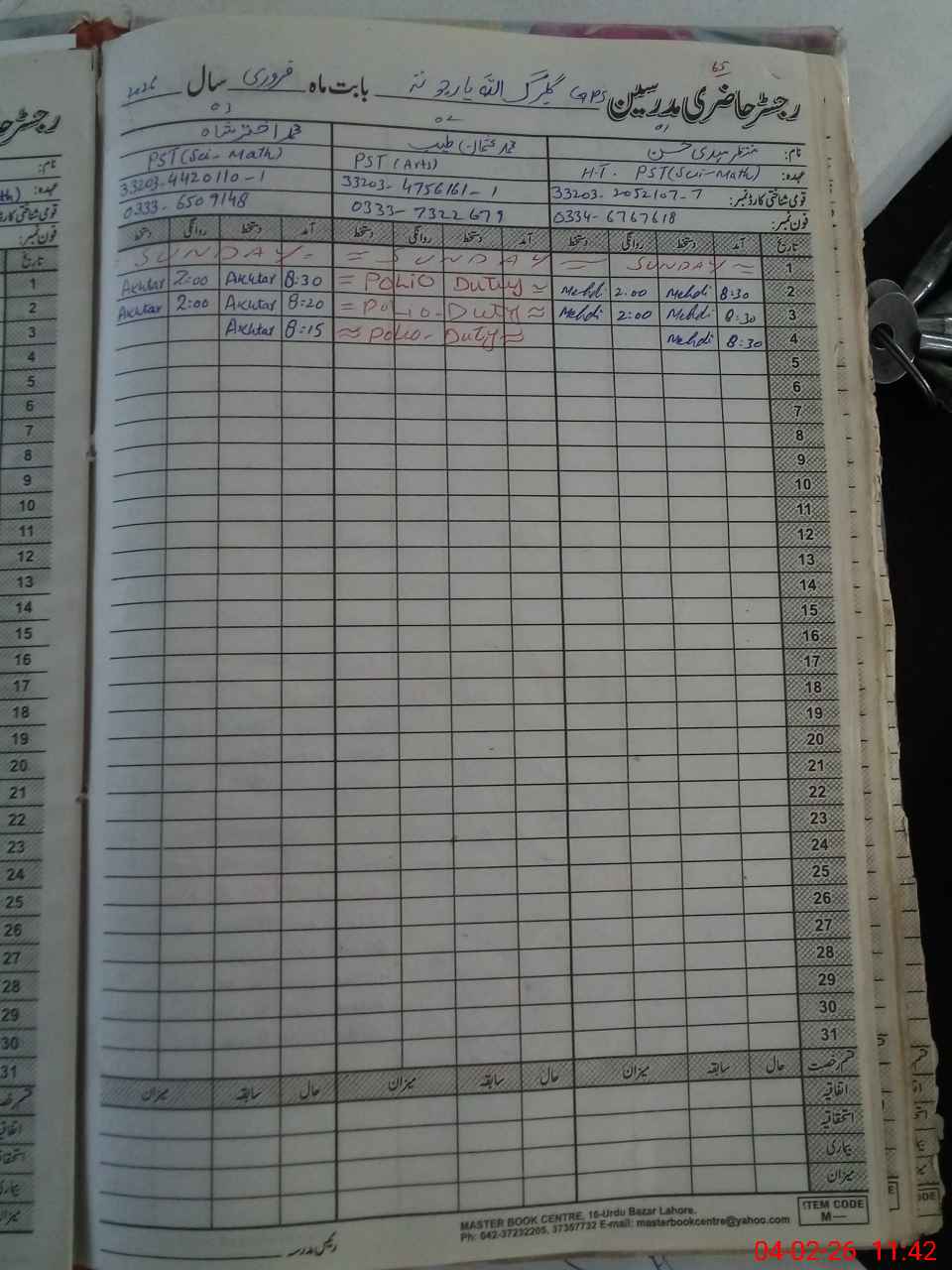 | Leave | Duty | Absent | Maternity | Medical | Ex- Pak |