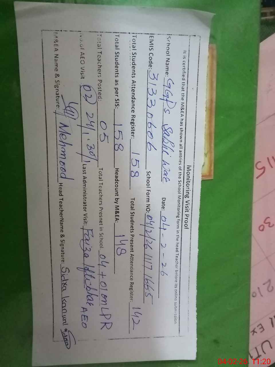 | EMIS Code: 31330606 | Name of School: GGPS SAKHI WAR | |||