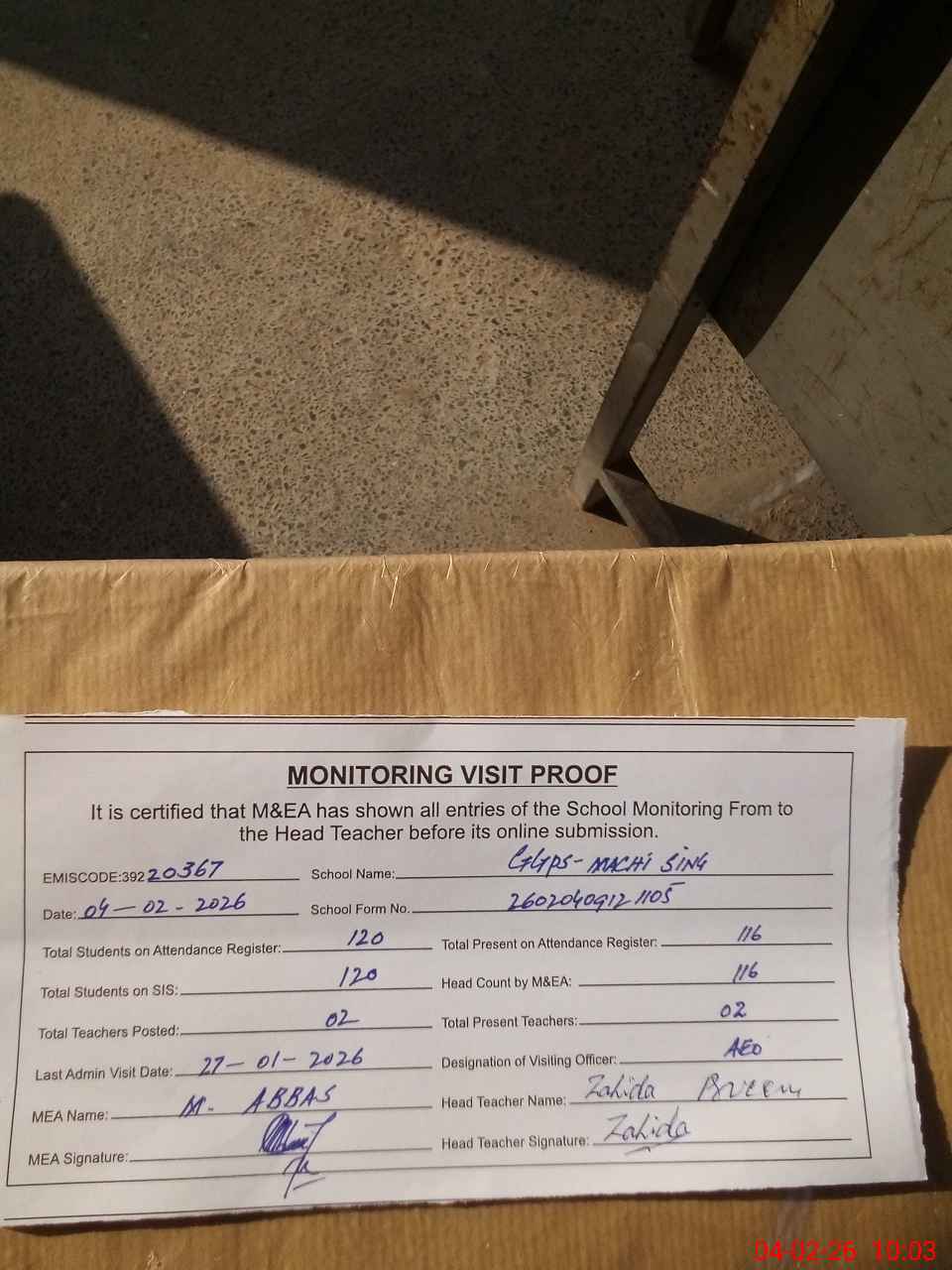 | EMIS Code: 39220367 | Name of School: GGPS MACHI SINGH 1 | |||