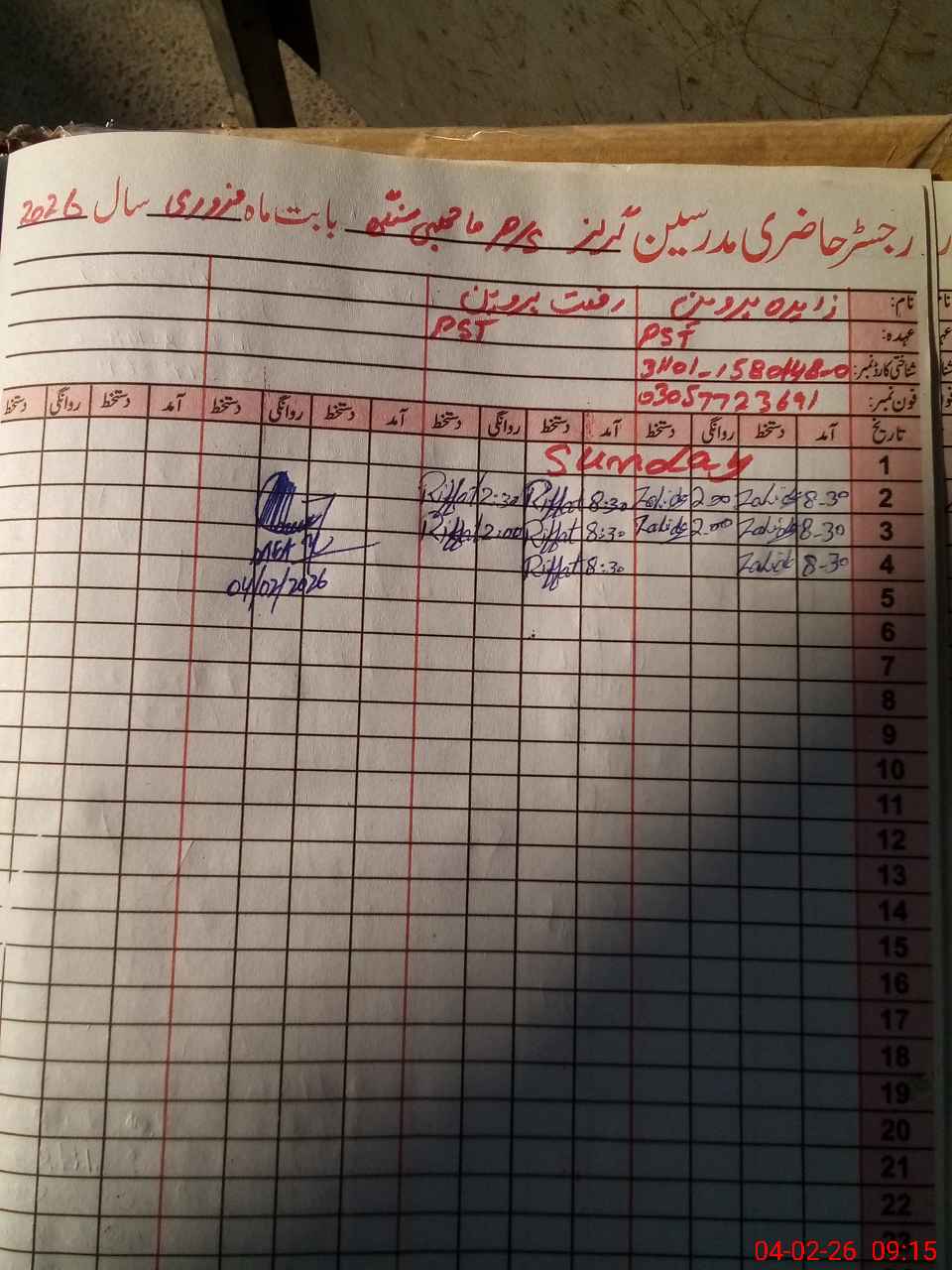 | Name: ZA**** PE**** Designation: (School Headmaster's/Headmistress's) PST Phone/Cell Number: 03**** |