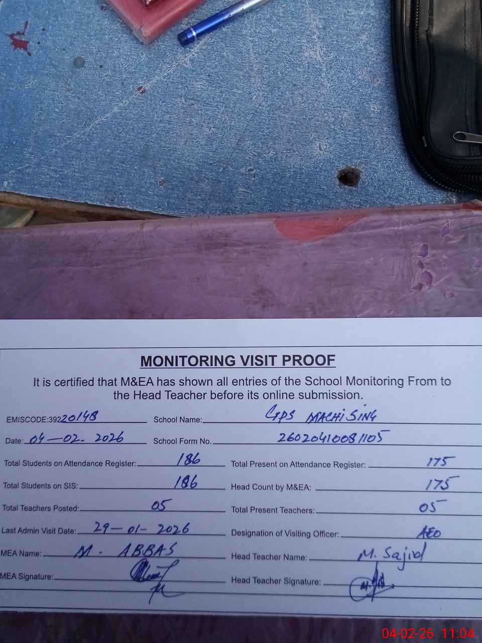 | EMIS Code: 39220148 | Name of School: GPS MACHHI SINGH | |||