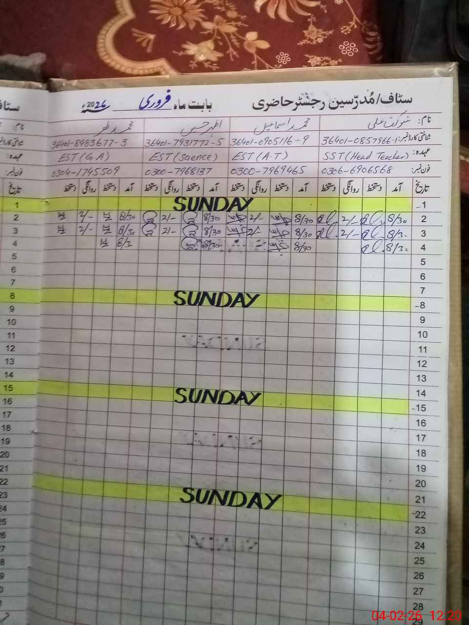 | Name: SH**** AL**** Designation: (School Headmaster's/Headmistress's) S.S.T.(SCIENCE) Phone/Cell Number: 03**** |