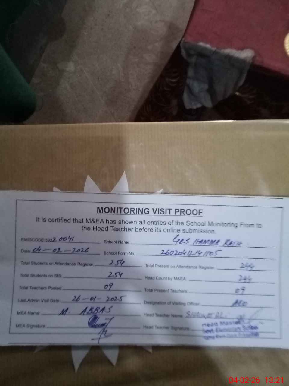 | Certified that this School was Inspected by the Undersigned MEA/DMO Today and the Information Stated Above is as Per Record. | |||||