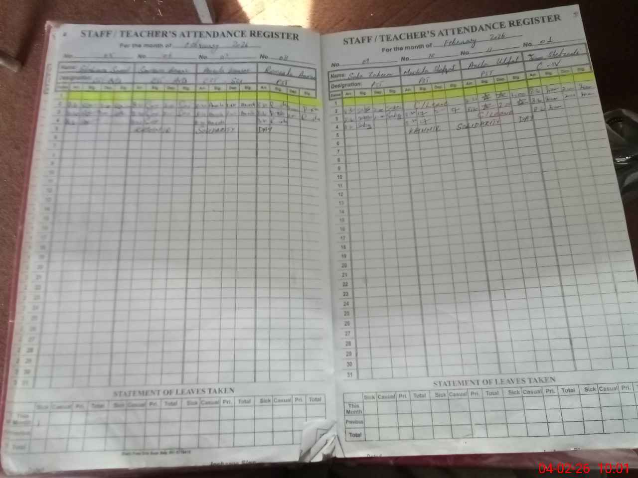 | Leave | Duty | Absent | Maternity | Medical | Ex- Pak |