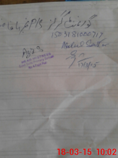 | Name: SA**** SI**** Designation: (School Headmaster's/Headmistress's) PST Phone/Cell Number: 03**** |