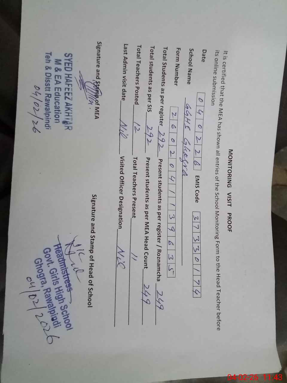 | EMIS Code: 37330174 | Name of School: GGHS GOGRA | |||